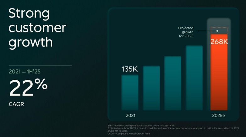 Since 2021, HubSpot has delivered a compound annual revenue growth rate of 24%. HubSpot is projecting 2025 revenue of $3.1 billion, up 17% in constant currency.