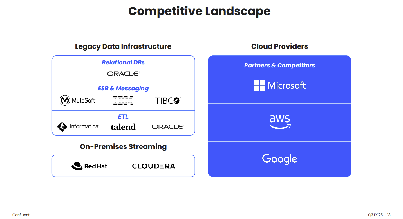 - Permission to play in a hot market. Confluent competes with a range of players including hyperscalers like AWS and its Kinesis.
