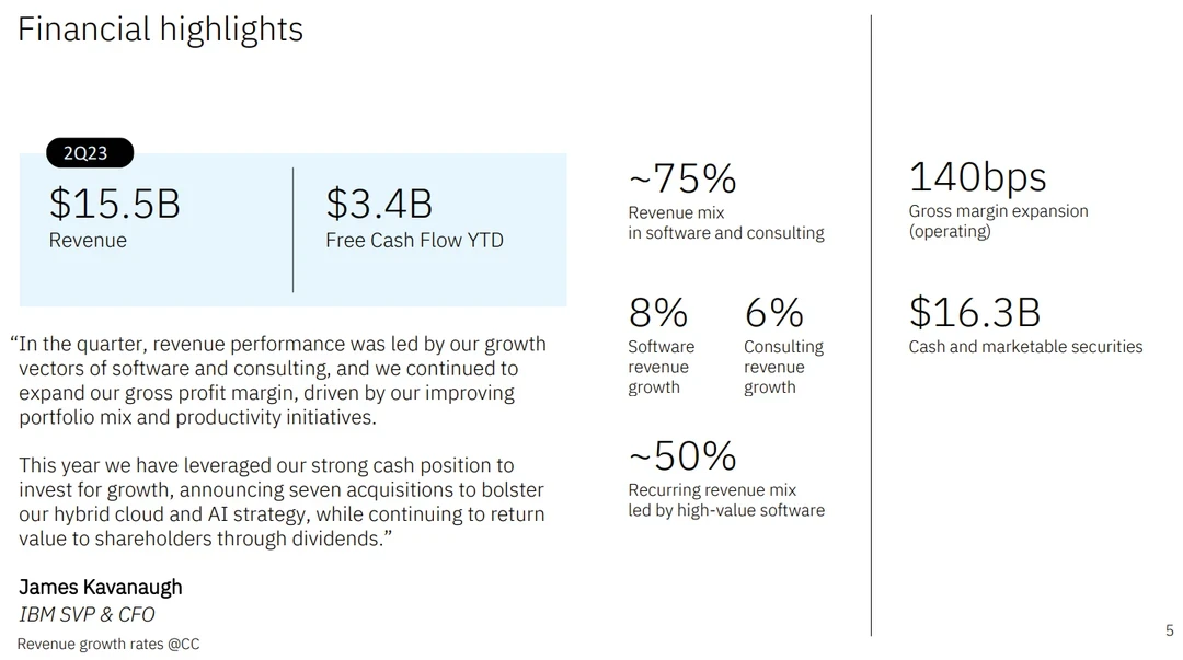 For 2023, IBM is projecting revenue growth of 3% to 5% with free cash flow of about $10.5 billion.