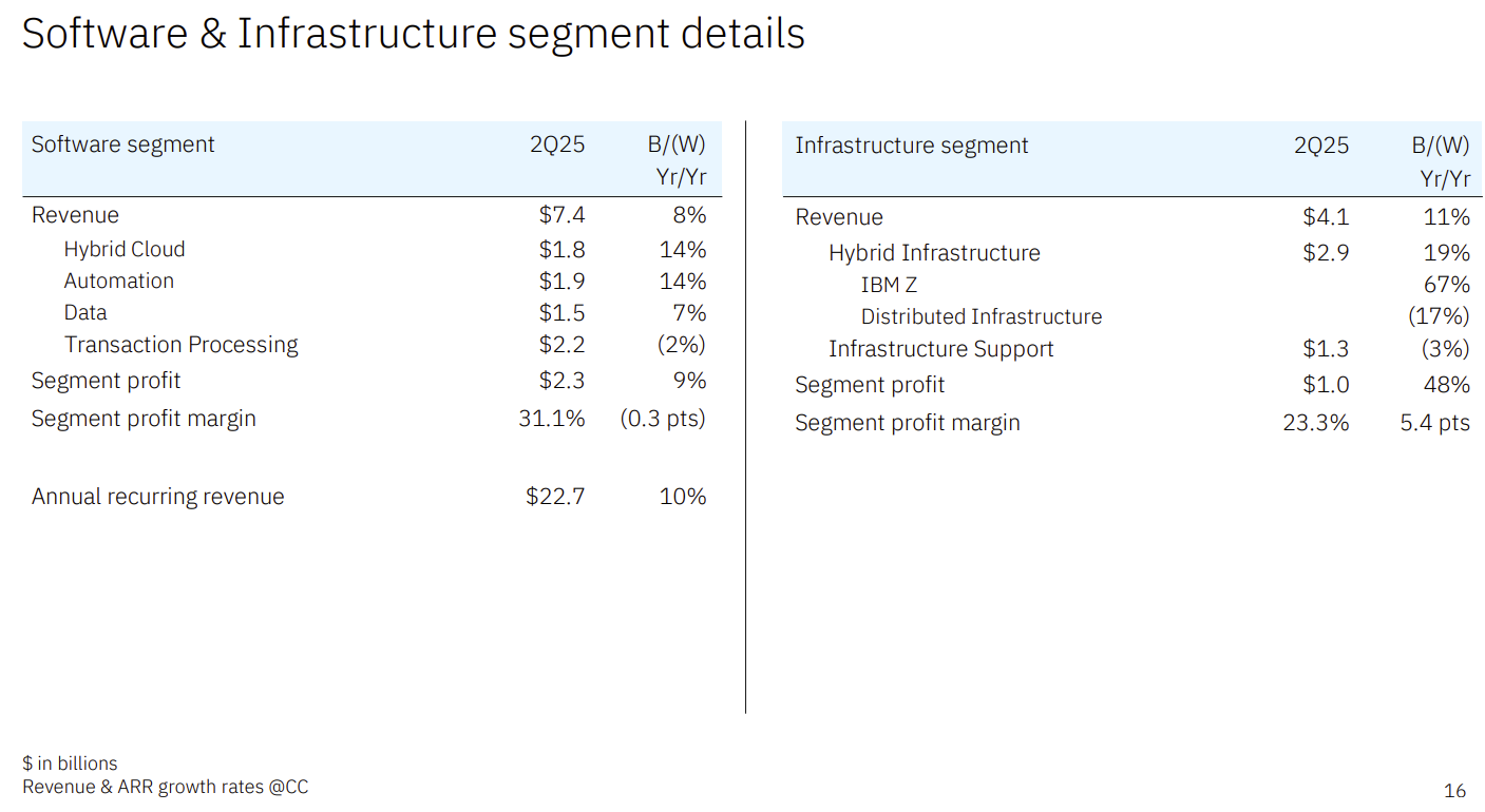 - "Infrastructure was up 11%, driven by a very strong start to z17. The new IBM Z is an embodiment of the hybrid cloud and AI capabilities we bring to clients."