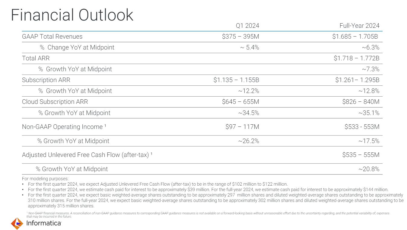 Informatica also reaffirmed its 2024 financial outlook. It also said Jitesh Ghai, Chief Product Officer, is leaving to pursue another executive position at another company.