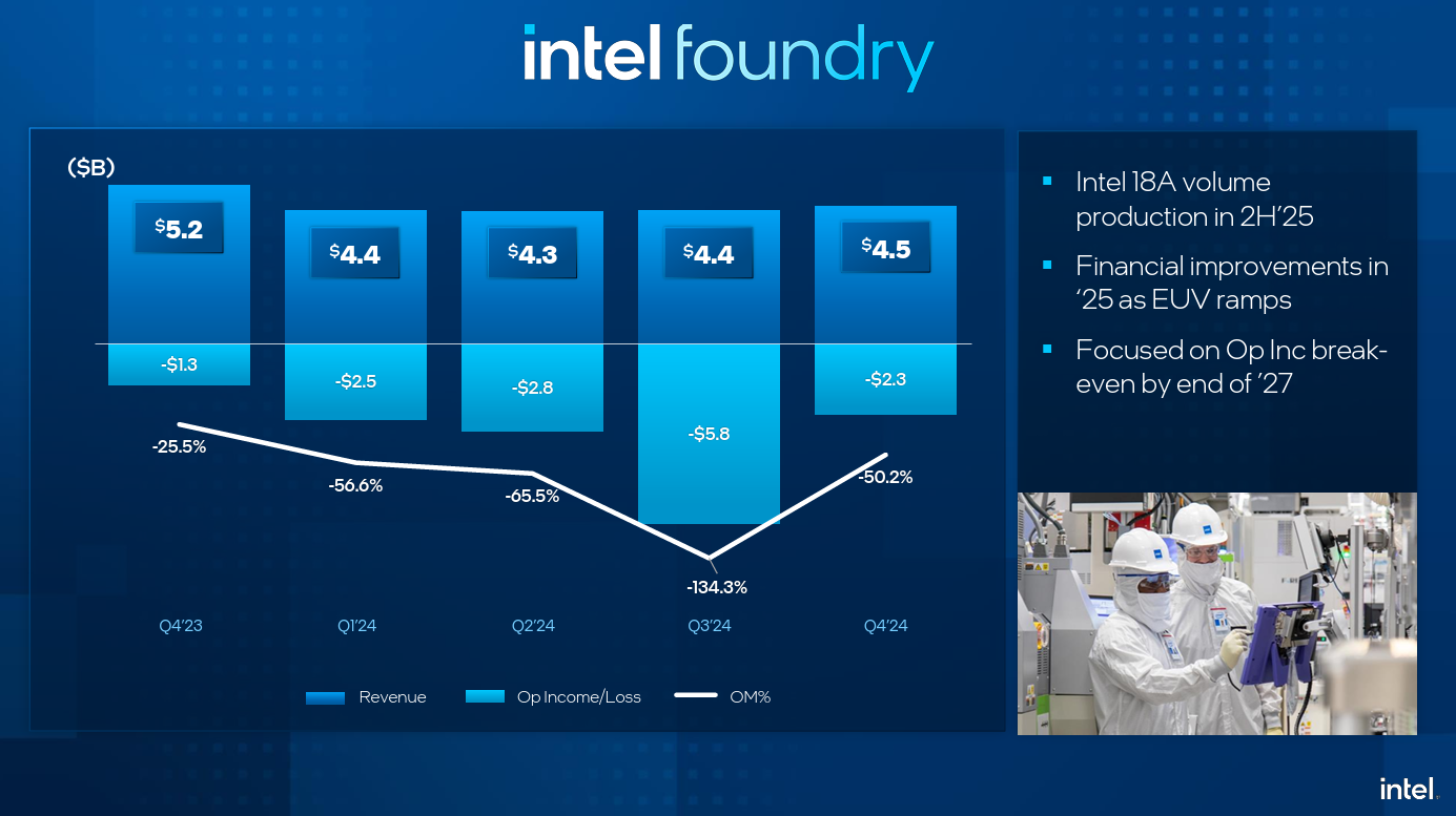 - Intel Foundry revenue in the fourth quarter was $4.5 billion, down 13%.
