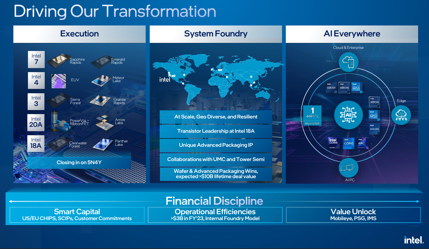 In a statement, CEO Pat Gelsinger said the company executed well and topped its expectations for the fourth quarter. For 2024, Gelsinger said "we remain relentlessly focused on achieving process and product leadership, continuing to build our external foundry business and at-scale global manufacturing, and executing our mission to bring AI everywhere."