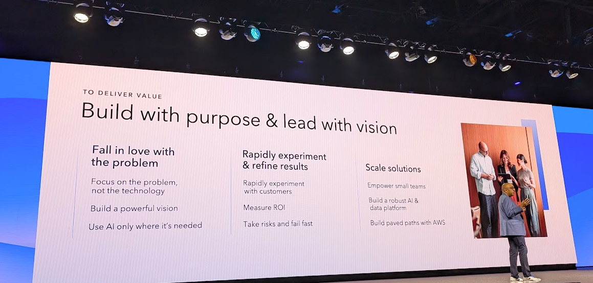 Srivastava kept with the practical AI theme at AWS Summit New York and said that enterprises shouldn't "become enamored with technology" and focus on business goals and outcomes.