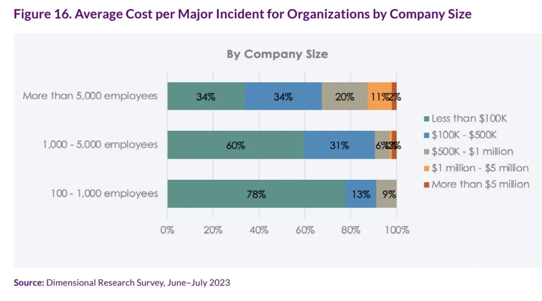 In fact, 53% of enterprises have seen anywhere from 3 to 10 major IT incidents in the past 12 months, up from 47% in the previous year. More shocking is that 56% of respondents say at least 50% of incidents could have been avoided with best practices. In addition, 55% of enterprises say the cost of major IT incidents have cost their organizations less than $100,000 with 27% putting expenses at $100,000 to $500,000 and 12% citing costs of $500,000 to $1 million.