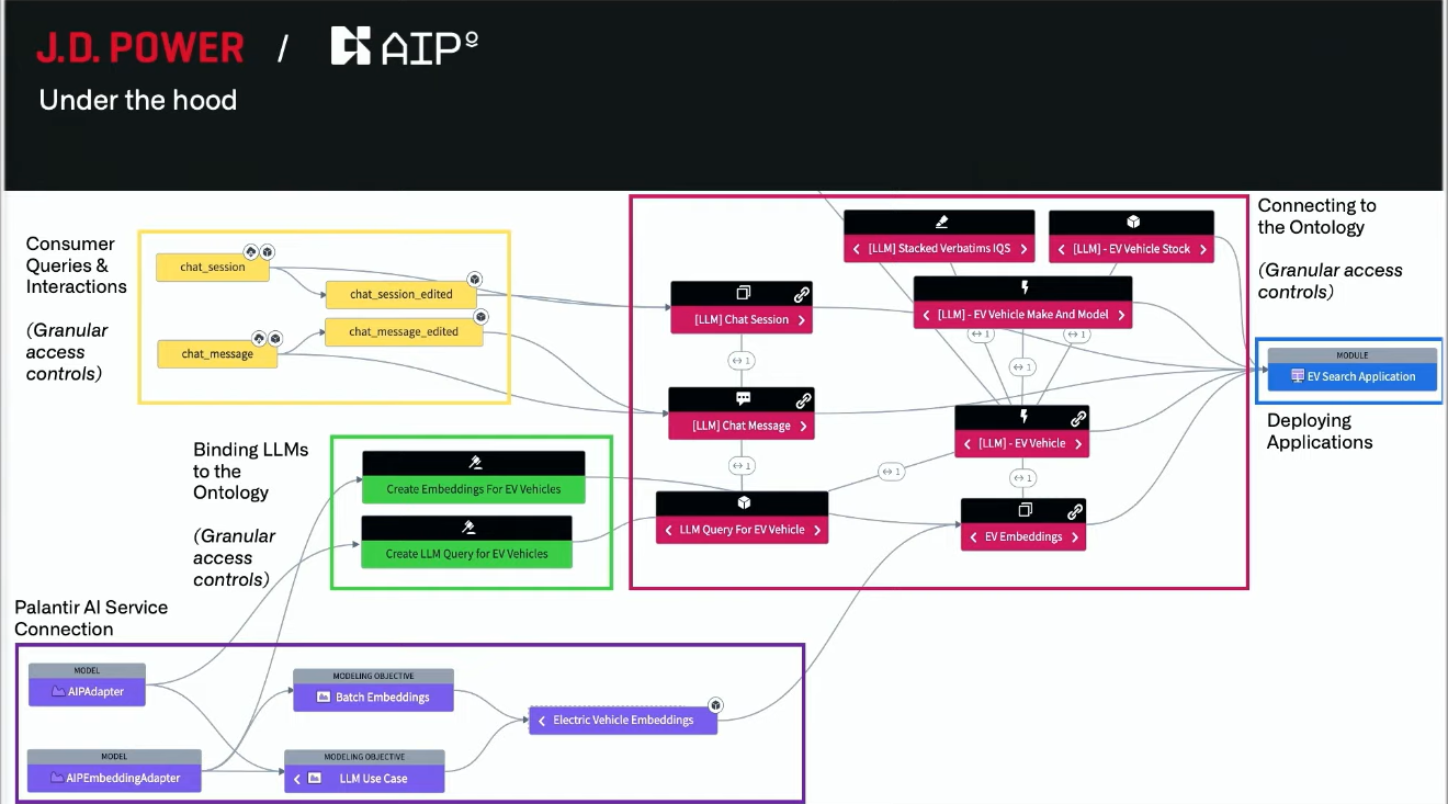 J.D. Power's demo focused on using its data and Palantir to train LLMs and then extended to other use cases.
