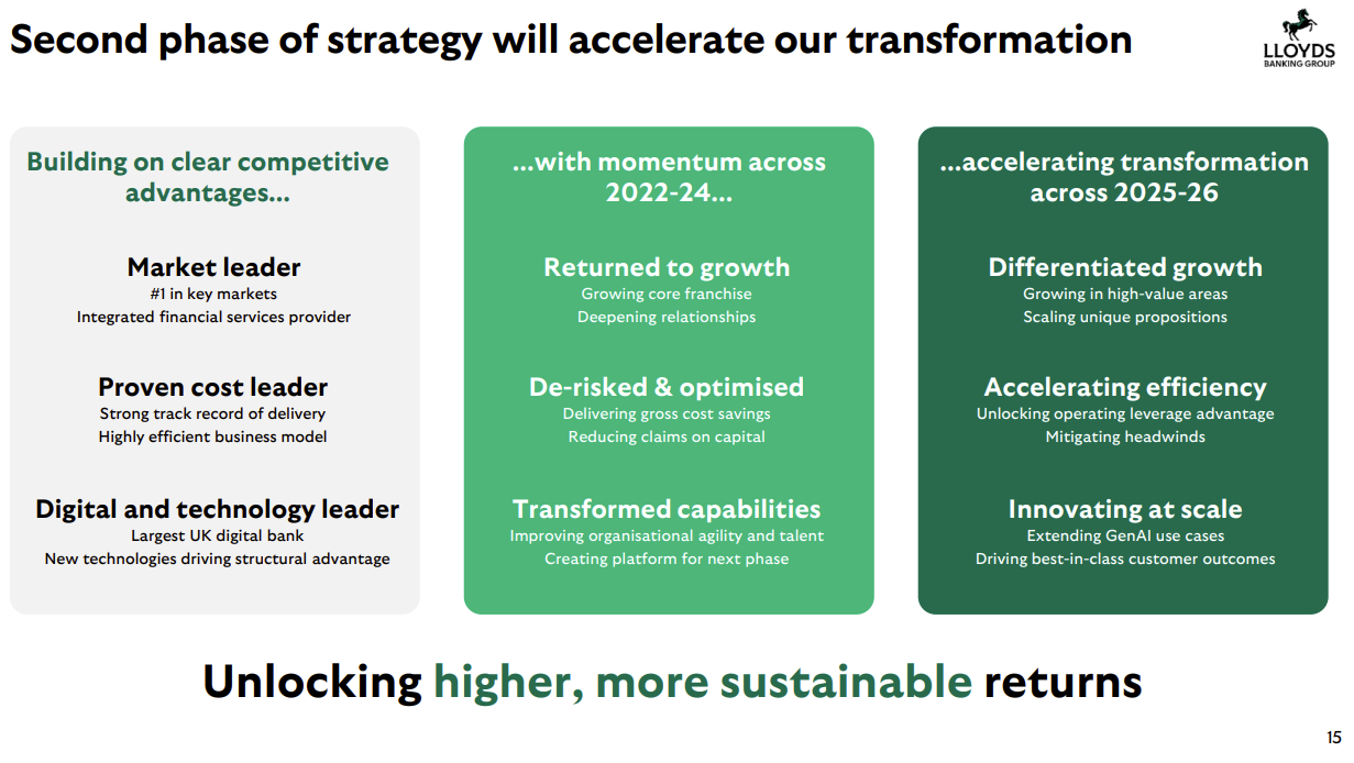 Lloyds said it started the first phase of its strategic transformation in 2022 with the aim of returning to growth and adding capabilities. Nunn said the bank focused on people, technology and data and specifically hired engineering talent.