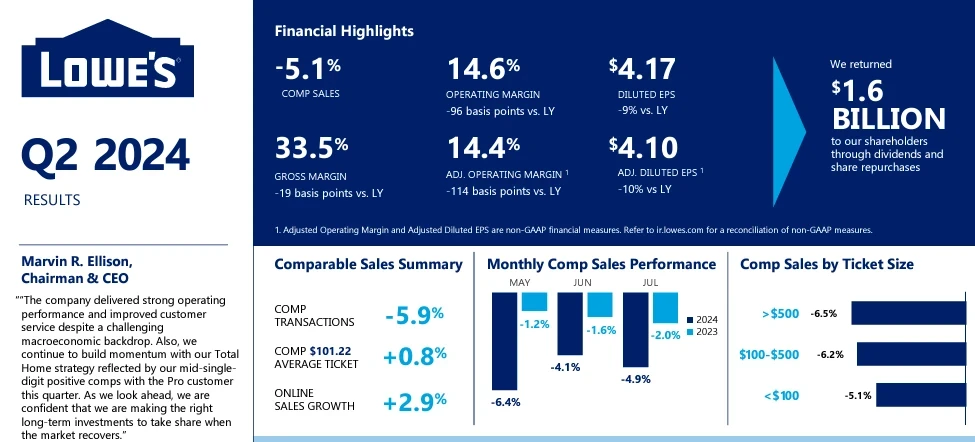 On Lowe's second quarter earnings conference call, the company outlined a bevy of technology projects even as it reported mixed results and cut its fiscal 2024 outlook.
