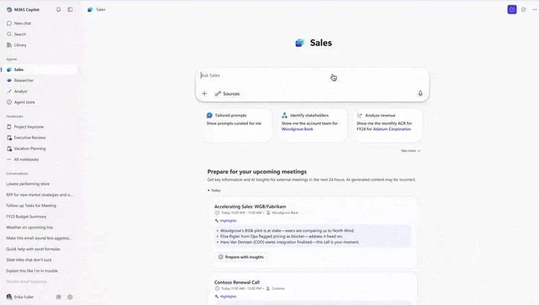 Microsoft announced a set of Copilots for sales, service and finance in a move that brings role-based assistants to Microsoft 365 Copilot.