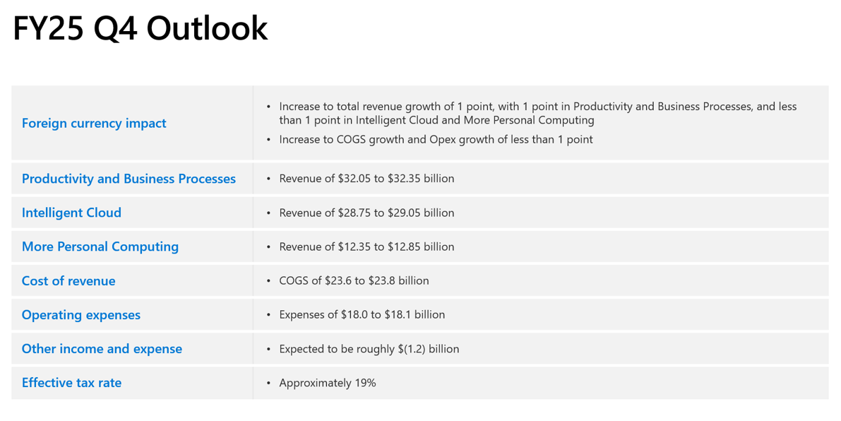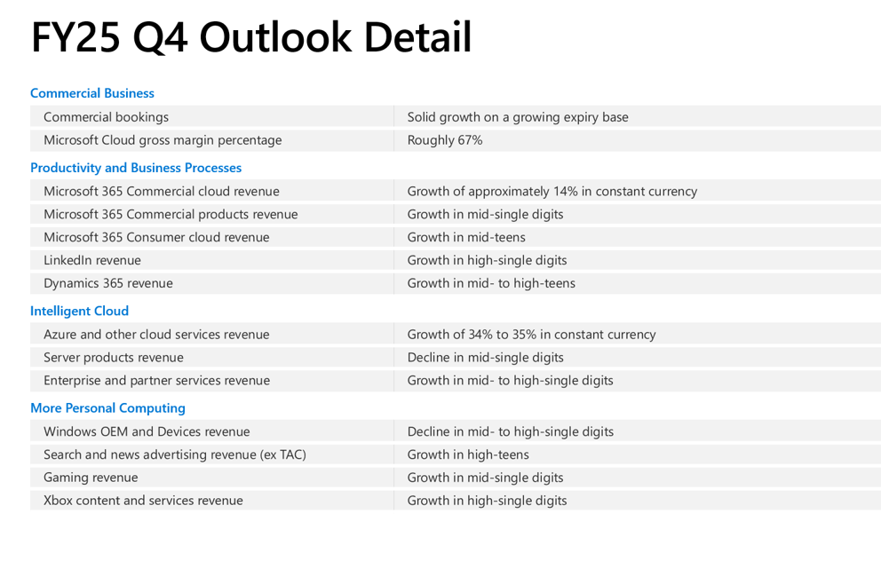 Wall Street was looking for Microsoft third quarter earnings of $3.22 a share on revenue of $68.42 billion. Analysts were modeling Azure growth of about 30%.