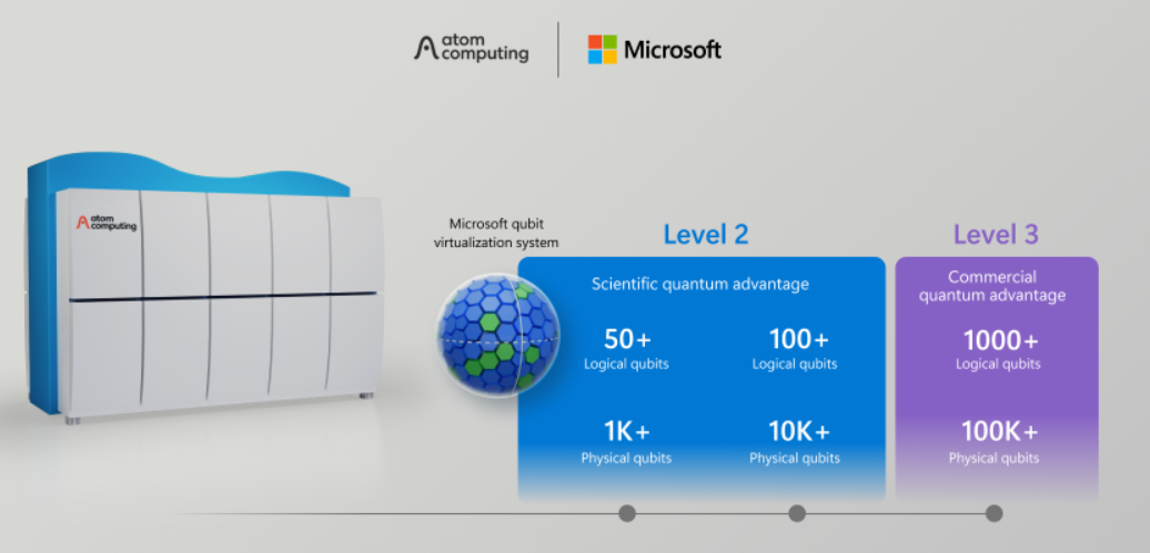 Microsoft's partnership with Atom Computing, which has yielded logical qubits and systems that are being optimized. Microsoft said it will apply its qubit-virtualization system to Atom Computing's second-generation systems within Azure Elements.