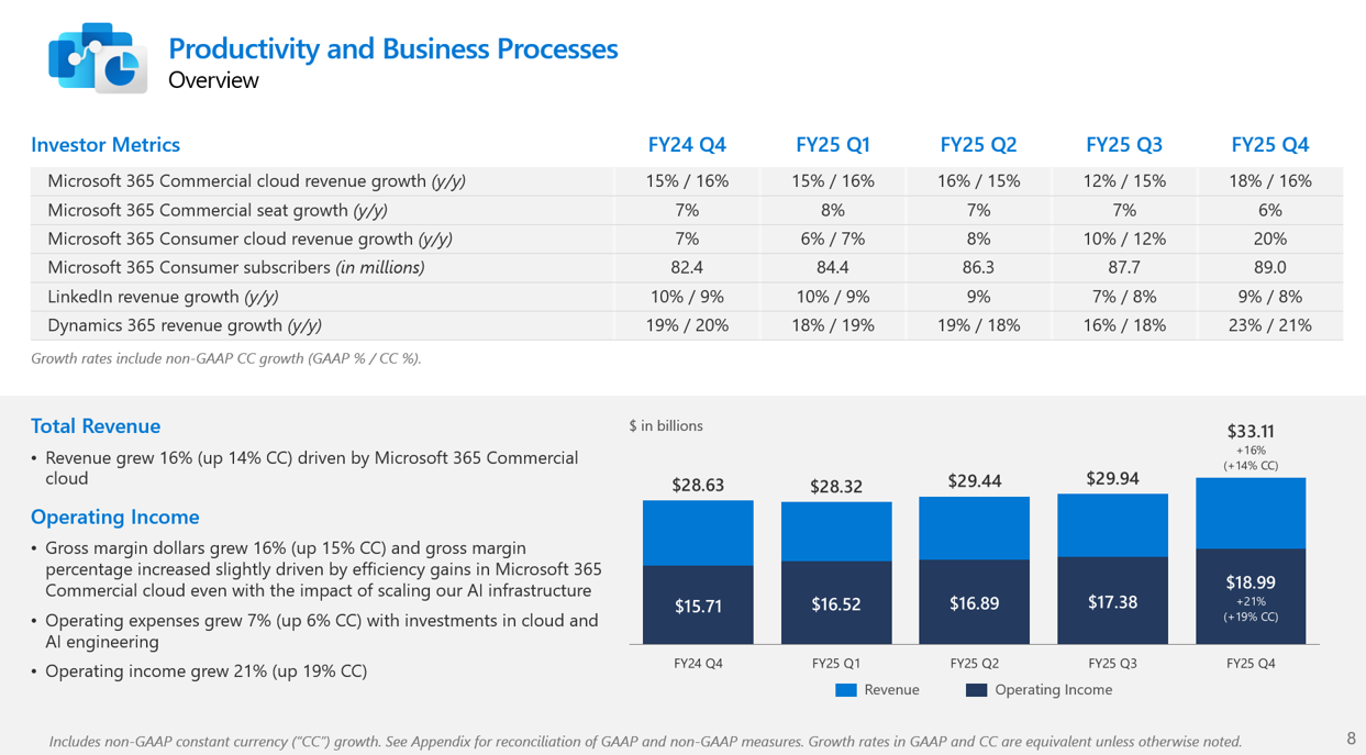 - Microsoft 365 Consumer products and cloud services revenue was up 21% in the fourth quarter.
