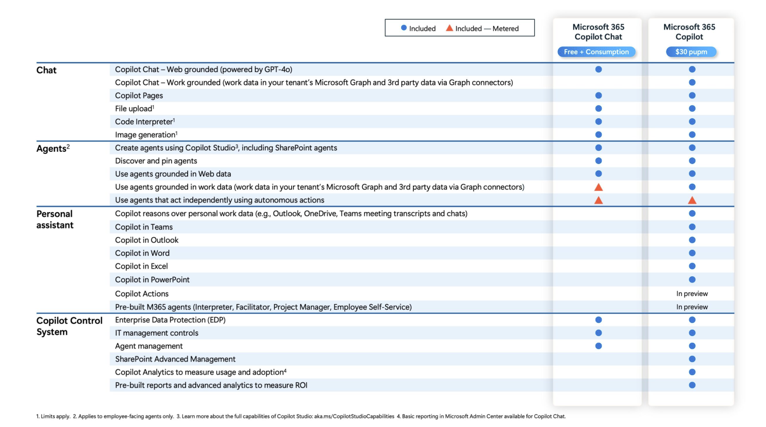Microsoft launched Microsoft 365 Copilot Chat which brings its free chat experience for Microsoft 365 commercial customers to a broader base. The catch is that there are pay-as-you-go agent capabilities.