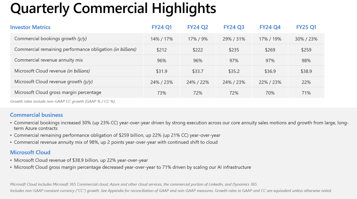 Microsoft reported better-than-expected first quarter earnings as commercial cloud revenue was up 22% and Azure grew 33% from a year ago.