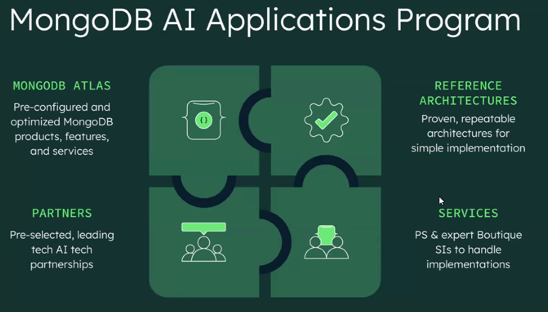 MongoDB launched the MongoDB AI Applications Program, or MAAP, that includes a bevy of technology partners, foundational models and advisory services to enable enterprises to deploy generative AI applications faster.