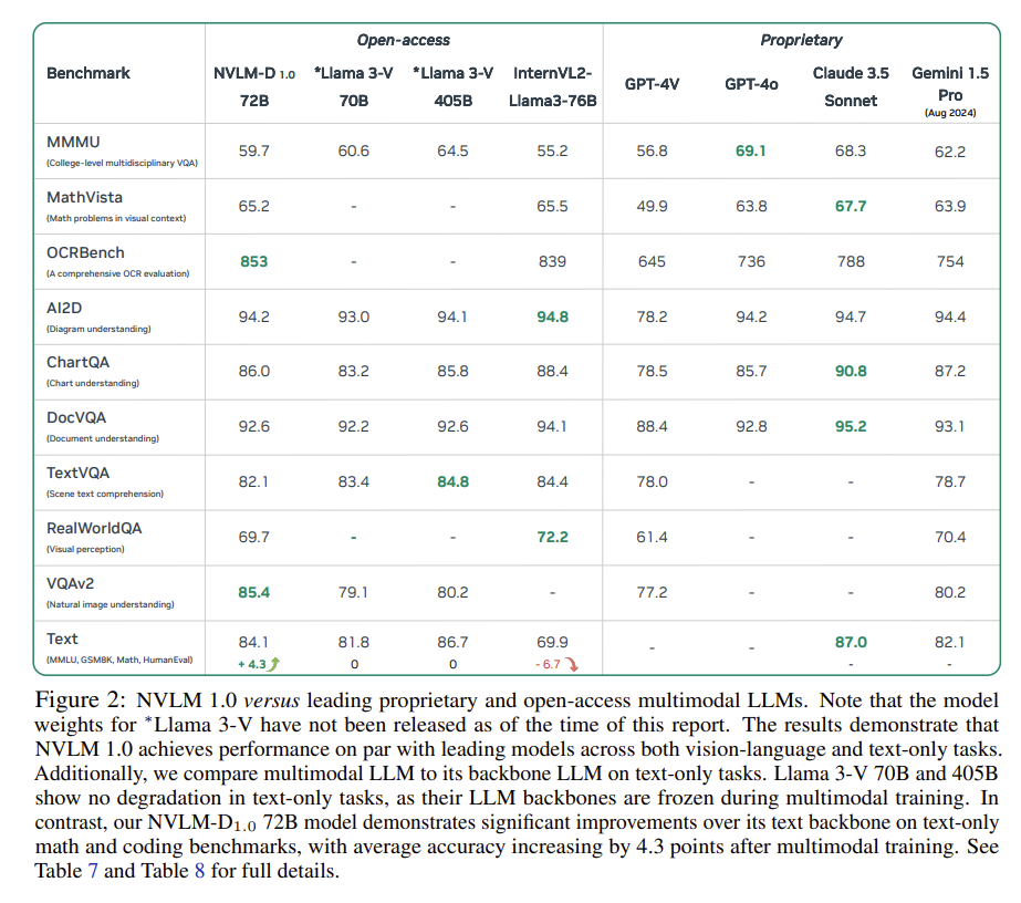 Nvidia released NVLM 1.0, an open-source large language model family that includes a flagship 72B parameter version NVLM-D-72B.