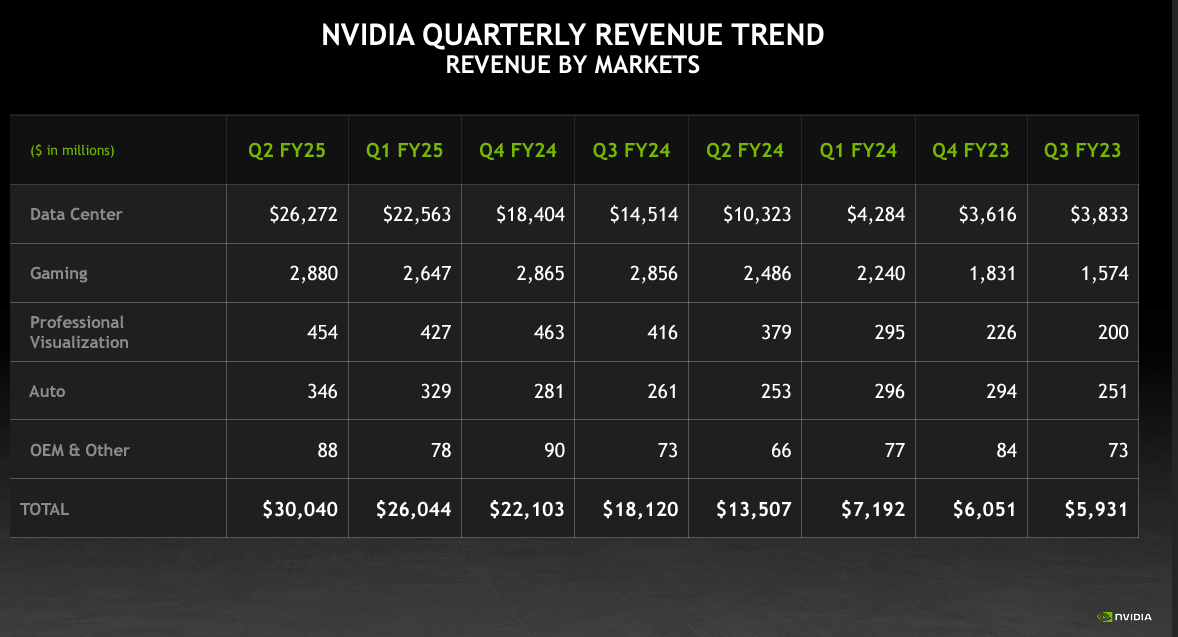 Data center revenue in the second quarter was $26.3 billion, up 154% from a year ago.