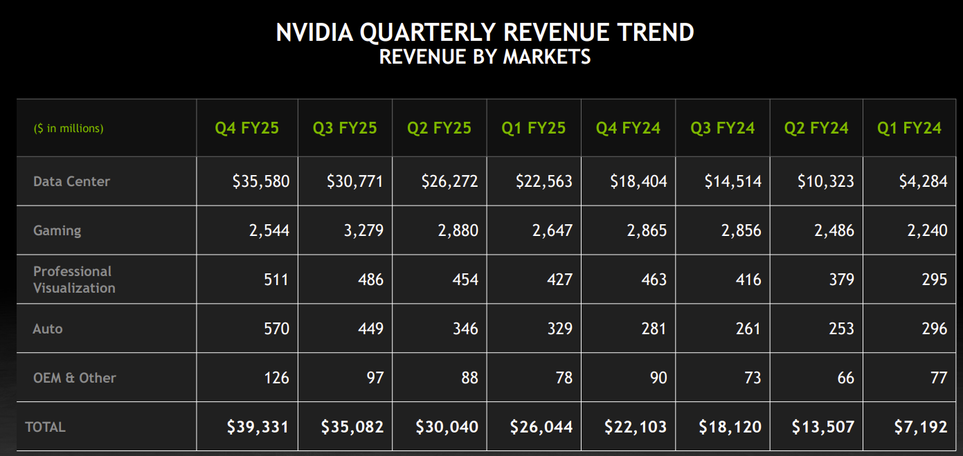 - "Automotive revenue for fiscal 2025 was up 55% from a year ago. Automotive revenue for the fourth quarter was up 103% from a year ago and up 27% sequentially. These increases were driven by sales of our self-driving platforms."