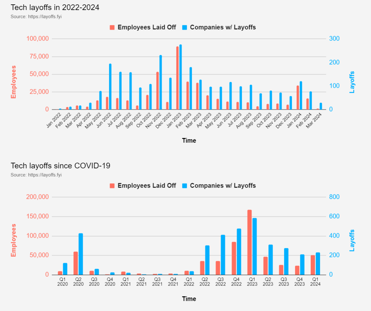 In 2024, it appears to be a similar layoff story via Layoff.fyi.