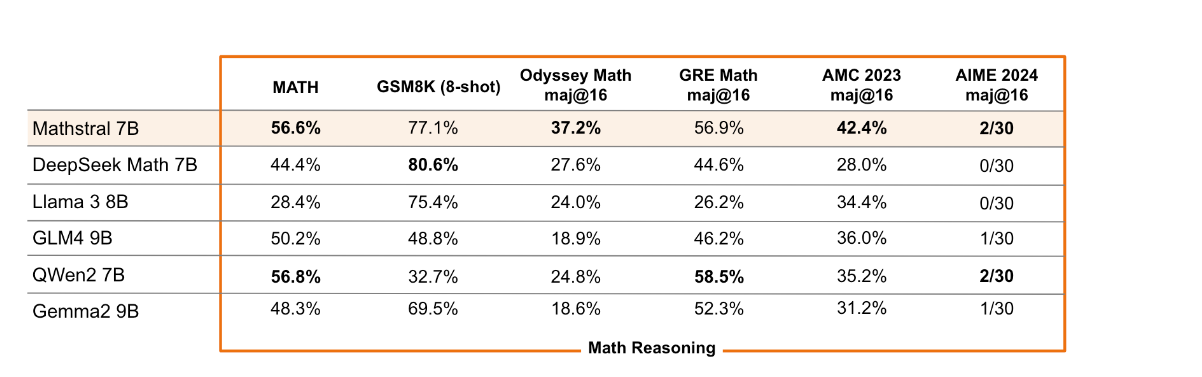 Mathstral, which is released under an Apache 2.0 license, outscored most models on math reasoning.