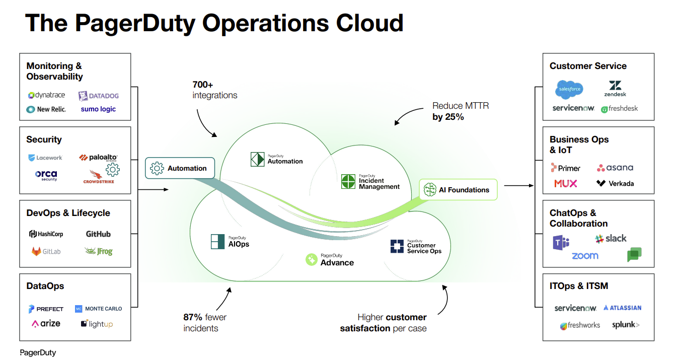PagerDuty provides observability and incident management tools. PagerDuty and AWS already have nearly 6,000 joint customers. PagerDuty's Operations Cloud detects and diagnoses disruptive events, coordinates response and streamlines workflows.