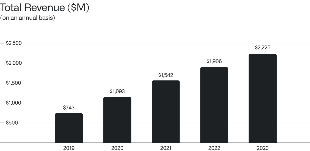 For 2023, Palantir reported net income of $210 million, or 9 cents a share, on revenue of $2.23 billion, up 17% from the year before.