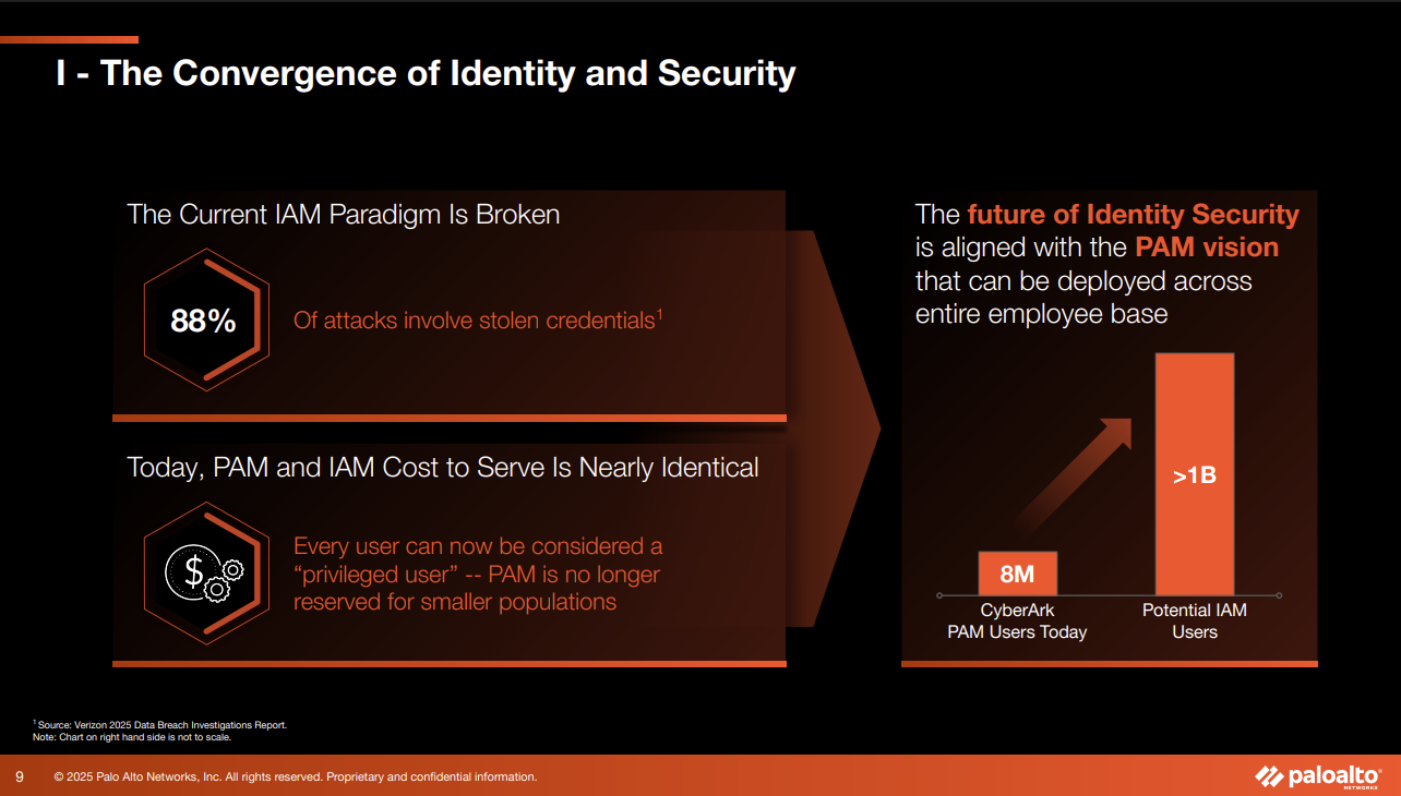 - Palo Alto Networks with CyberArk is a bet that the combined companies can take share in the legacy identity access market.