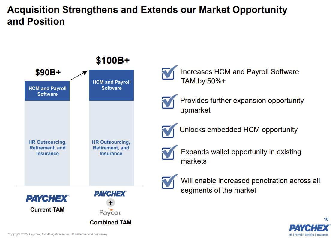According to Paychex and Paycor, the combined company will boost its total addressable market by offering a suite of technology and services for HR, employee benefits, insurance and payroll.