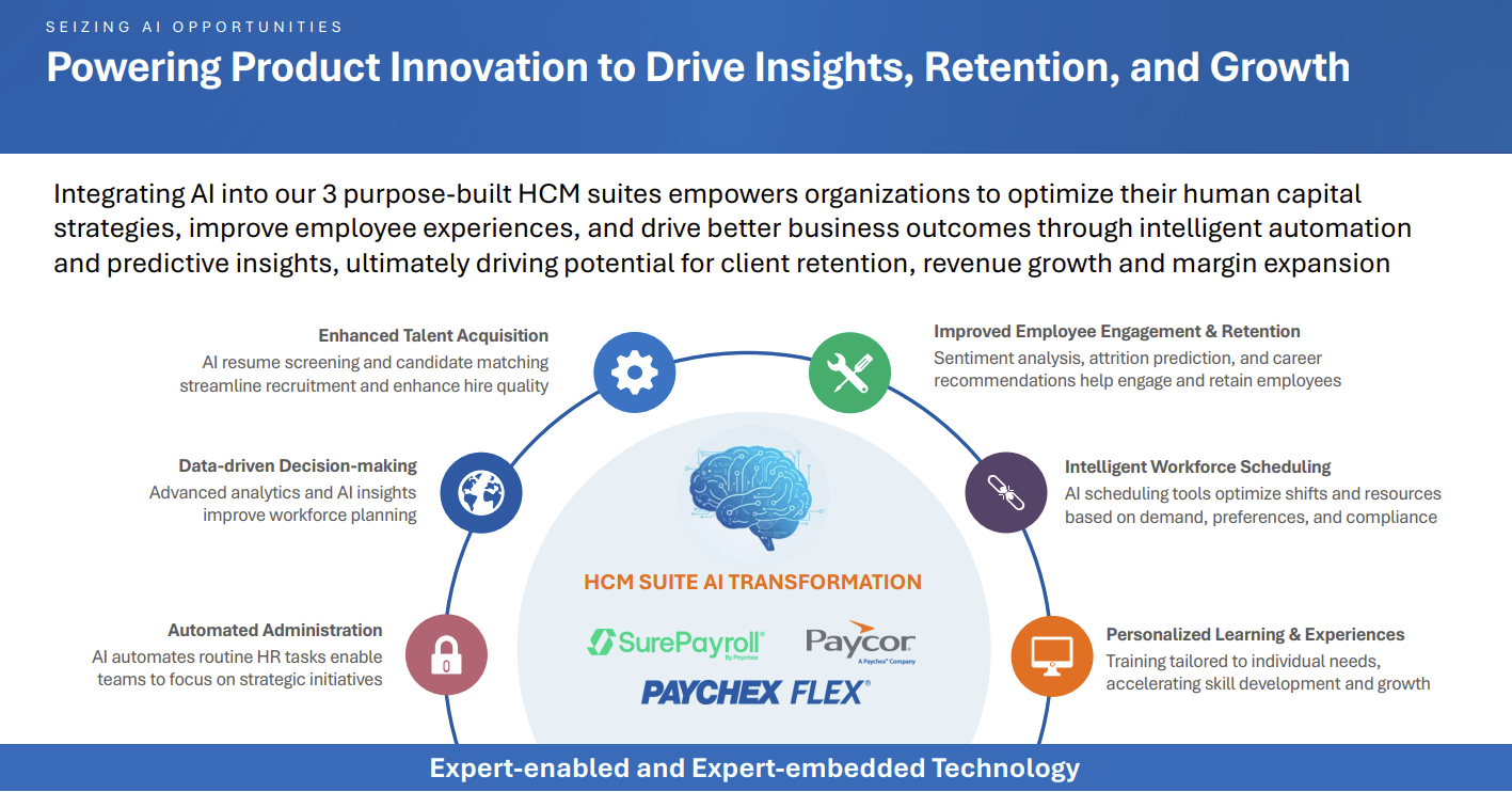 Paychex is betting that its proprietary data sets in human capital management and adjacent markets will make it a winner in AI via productivity and new products.