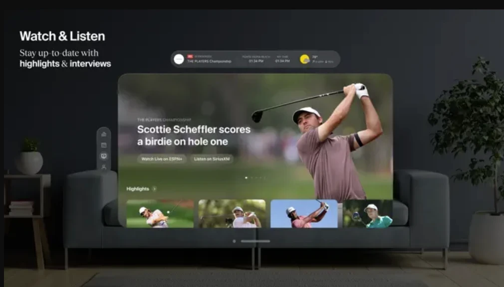 "We're excited about it, but we don't expect it to drive massive engagement yet," said Trembath. "But if I were to step back, close my eyes and picture the future of how people engage with golf I see something similar to what's on the Vision Pro. You might have a leaderboard in front of you, statistics on making a birdie and the ability to click into an experience that's beyond the tee box or on the green."