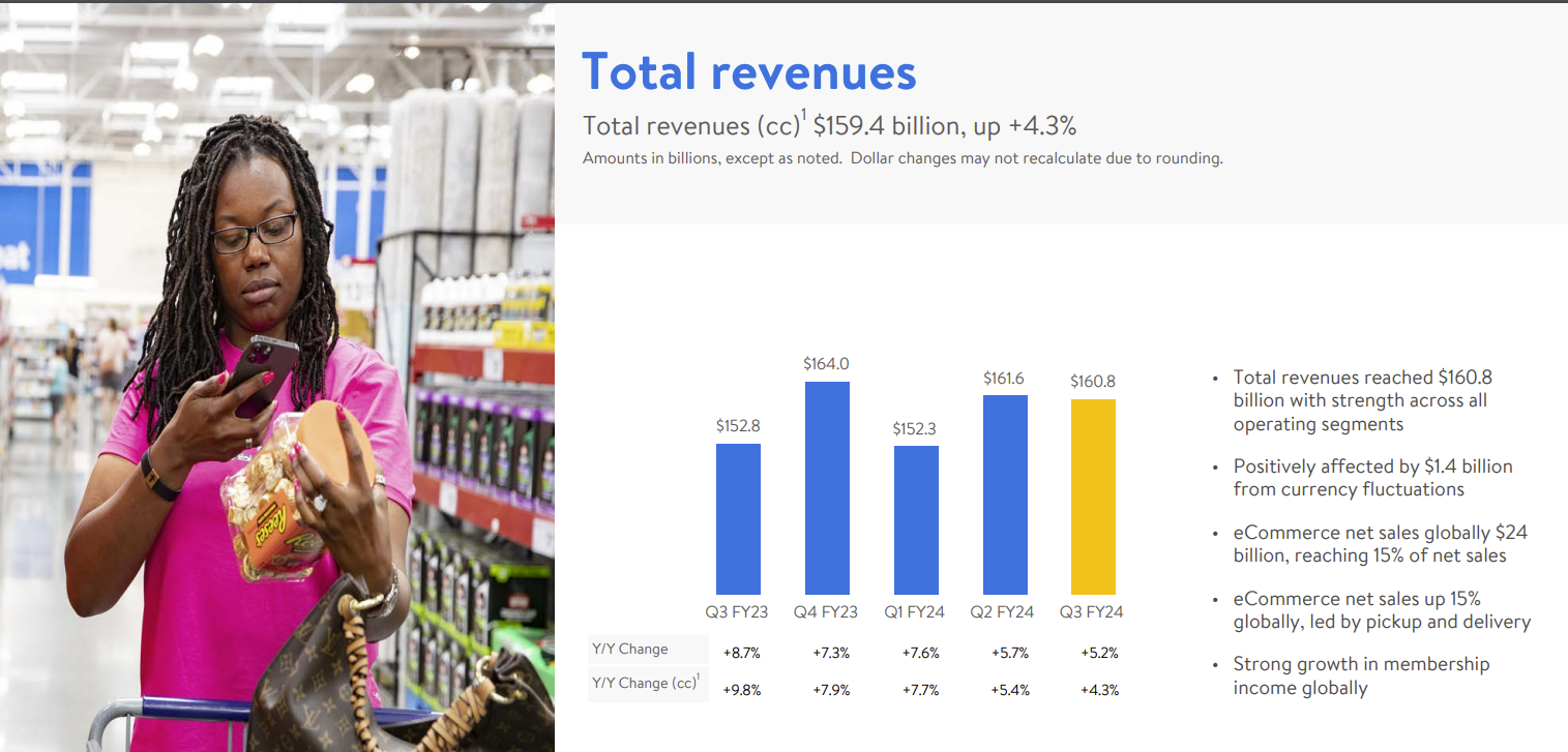Rainey said omni-channel services such as pickup and store fulfilled delivery are driving growth. Walmart 24% e-commerce revenue growth in the third quarter and share gains among higher income households.