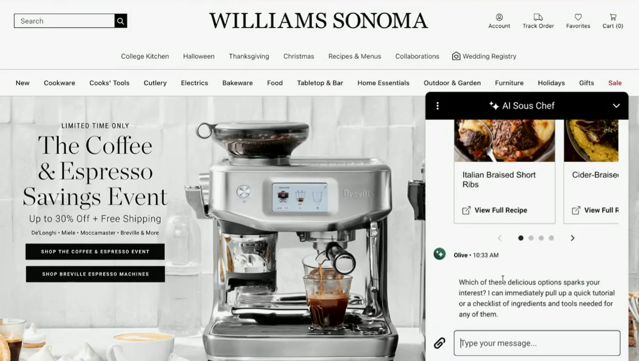 Williams Sonoma CEO Laura Albert said Agentforce is powering the company's Olive AI agent and the goal is to make the digital retail channels as personable as the physical stores. "We do 70% of our business online, but can you imagine if the websites give you the same warm feeling you get from the stores," said Albert.