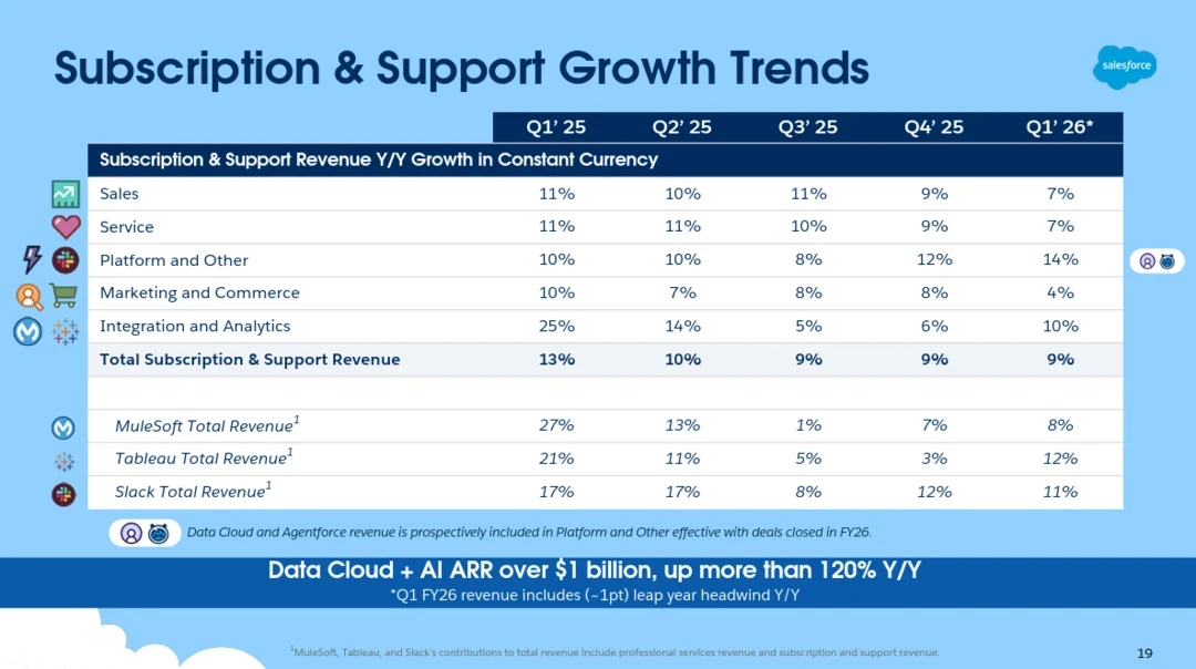 The company’s first quarter results land a day after the company announced its $8 billion acquisition of Informatica for its data integration and management platform.