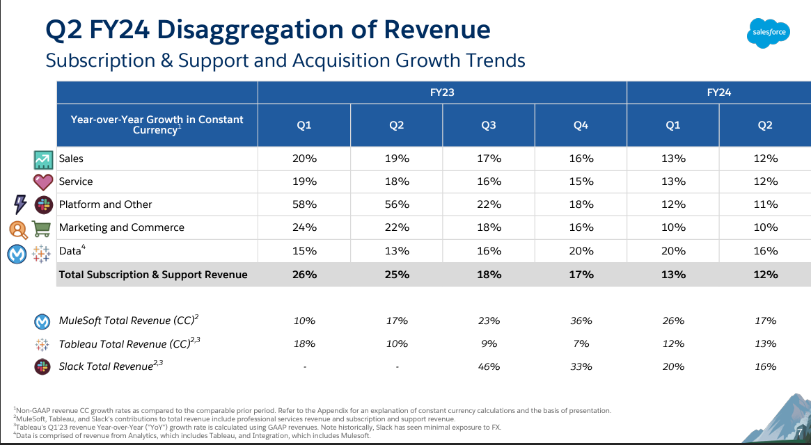 In July, Salesforce said it would raise list prices across its clouds by about 9%. Those price increases started in August and weren't captured for the second quarter, which ended July 31.