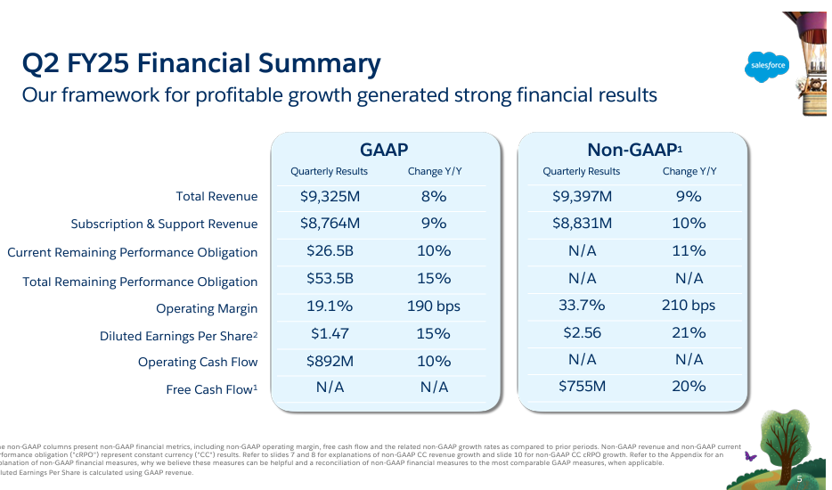 As for the outlook, Salesforce said third quarter revenue will be $9.31 billion to $9.36 billion, up 7%. Full year revenue will be $37.7 billion to $38 billion.