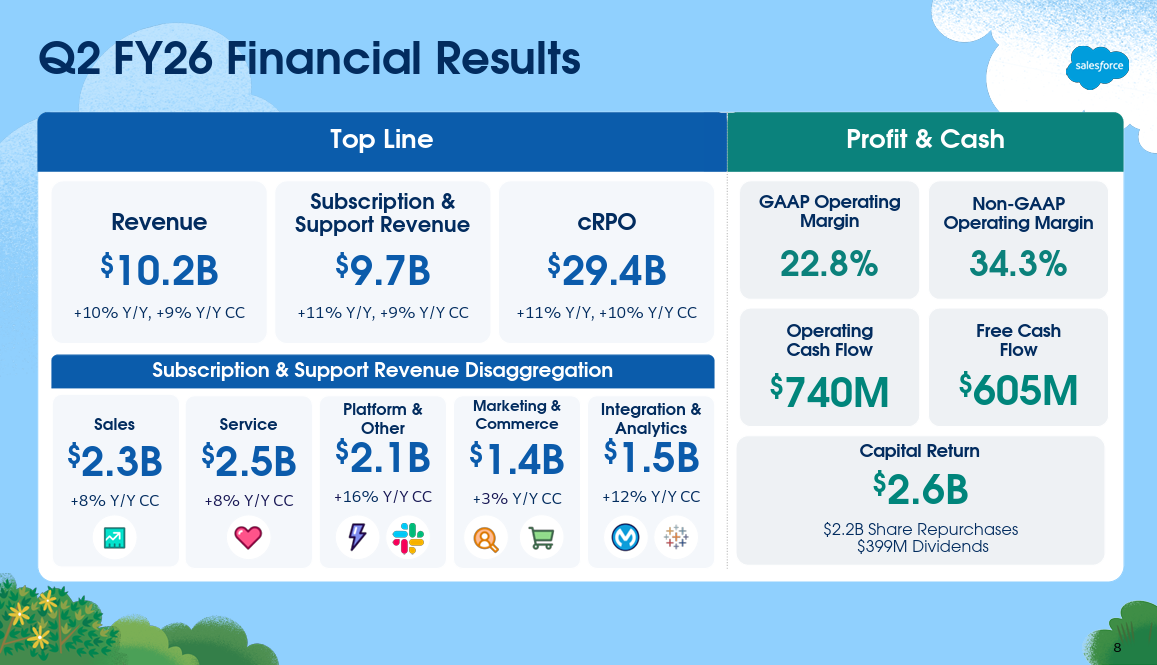 Wall Street was expecting Salesforce to deliver non-GAAP second quarter earnings of $2.78 a share on revenue of $10.14 billion.