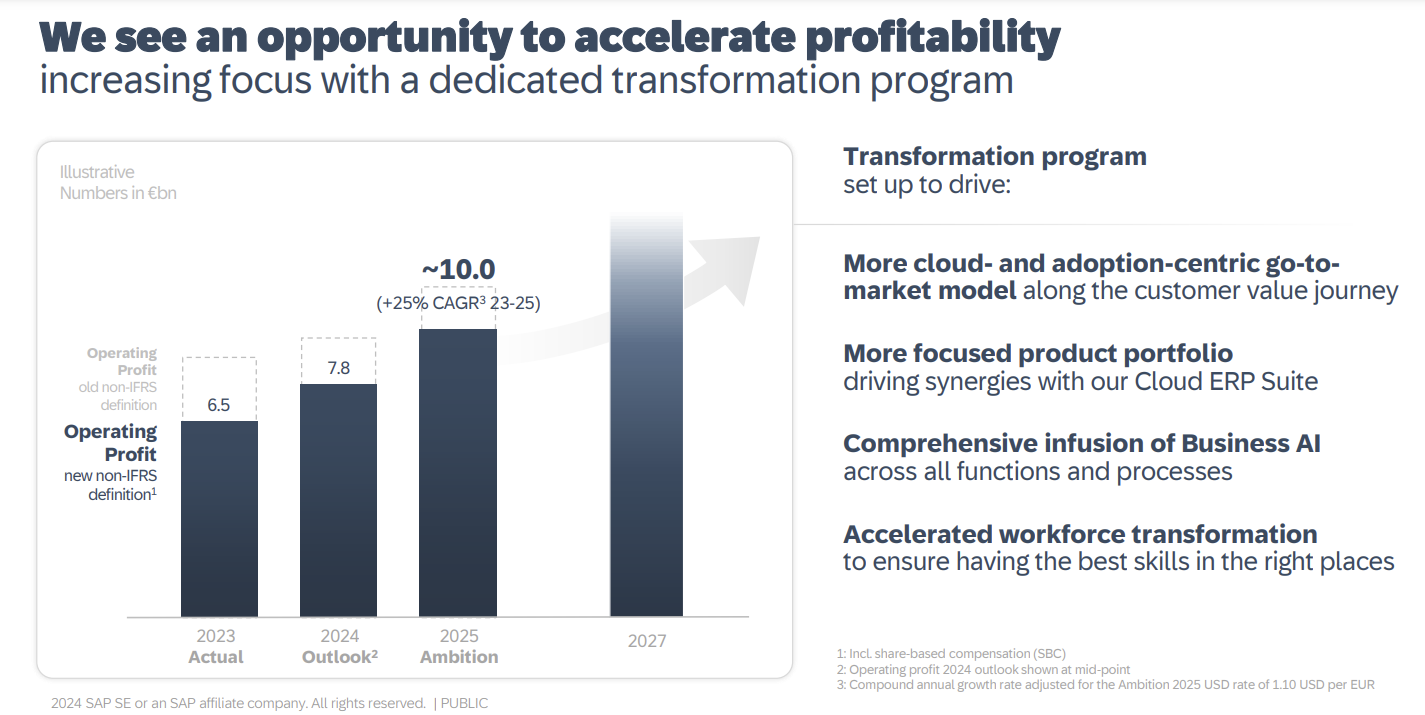 SAP also outlined its 2025 outlook including cloud revenue of more than €21.5 billion and total revenue of more than €37.5 billion. Non-IFRS operating profit by 2025 will be €10 billion.