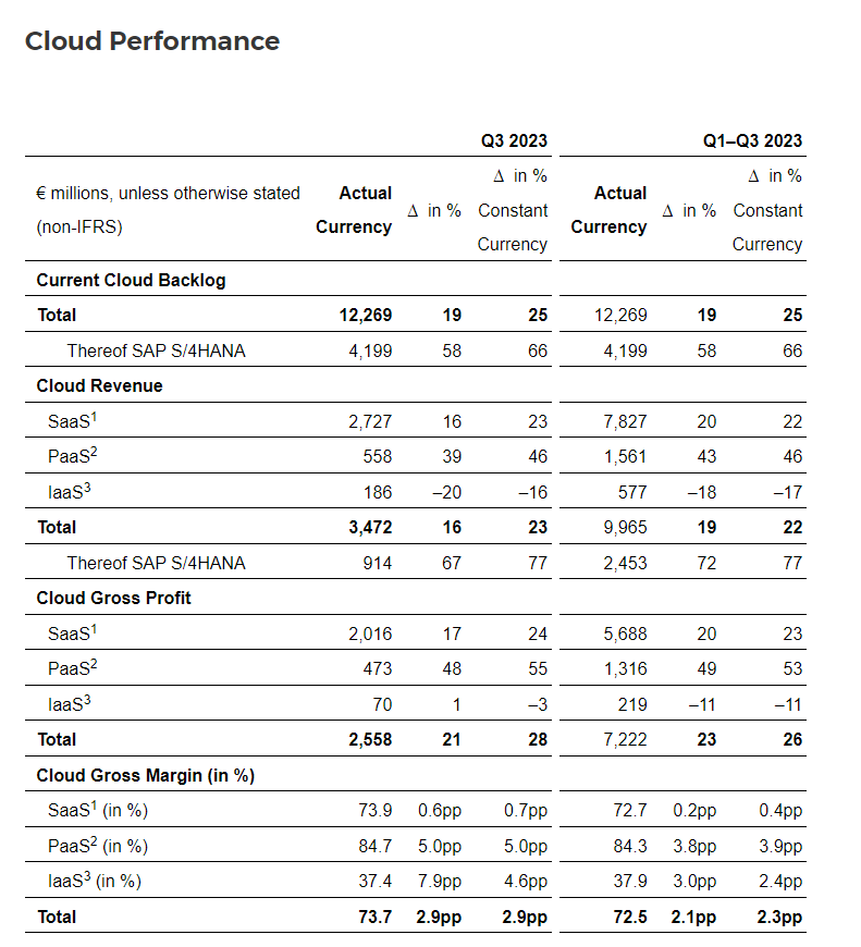 SAP said 2023 cloud revenue will be between â¬14.0 billion and â¬14.2 billion with total cloud and software revenue of â¬27 billion to â¬27.4 billion. A non-IFRS operating profit between â¬8.65 billion to â¬8.95 billion are expected. The guidance is in constant currencies.