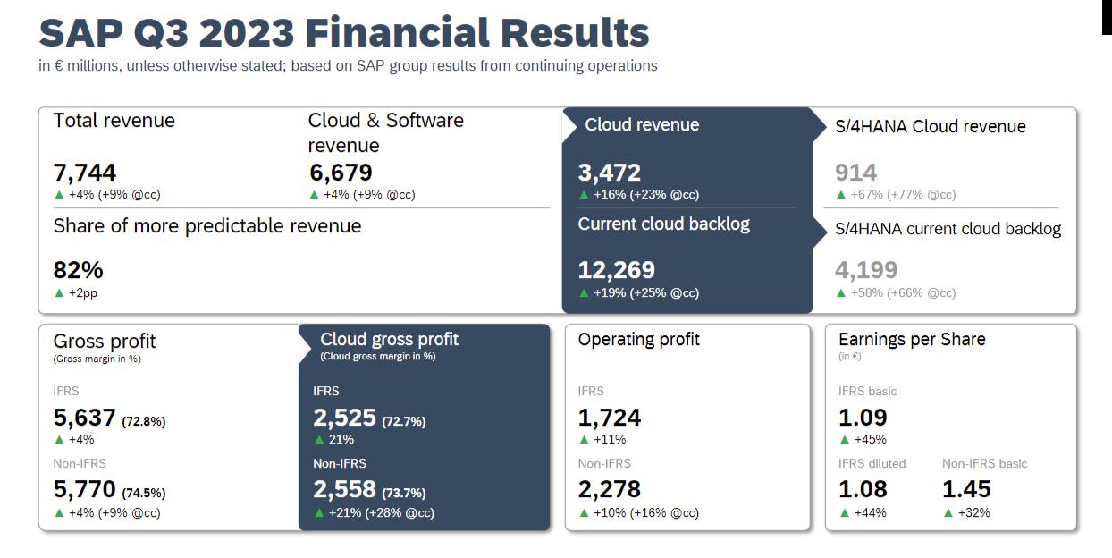 The enterprise software giant is in the middle of migrating customers to its SAP S/4HANA platform, so cloud revenue is closely watched.