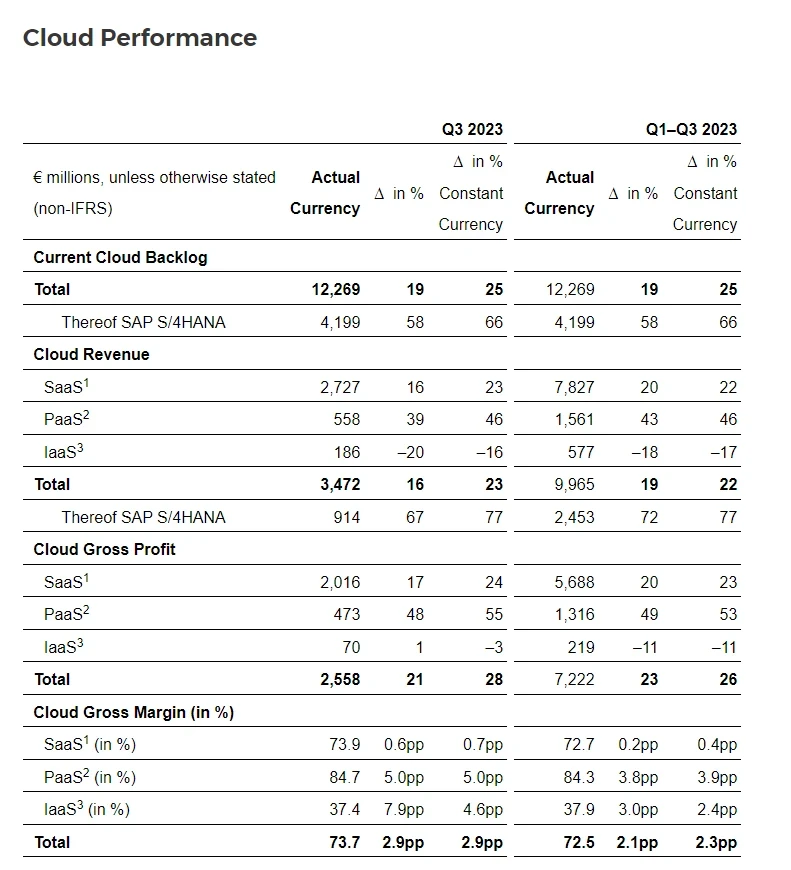 SAP said 2023 cloud revenue will be between €14.0 billion and €14.2 billion with total cloud and software revenue of €27 billion to €27.4 billion. A non-IFRS operating profit between €8.65 billion to €8.95 billion are expected. The guidance is in constant currencies.
