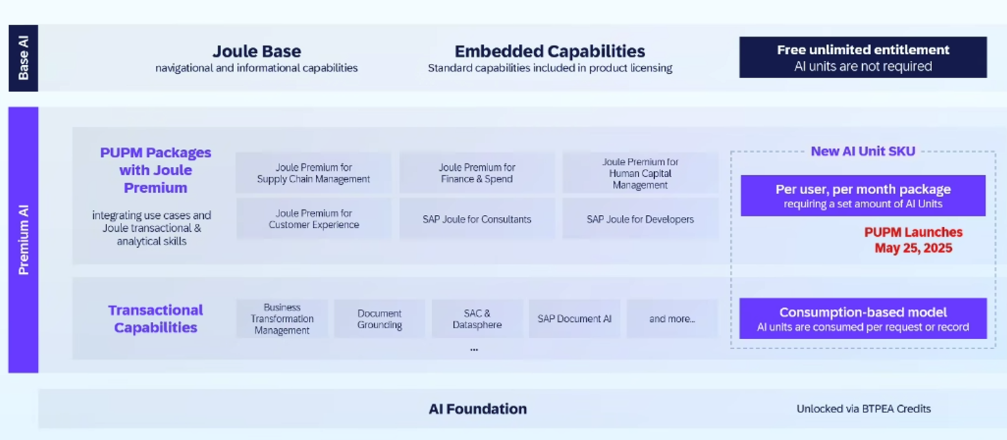 Transactional capabilities such as Datasphere, document grounding, SAP Document AI and others will be on a consumption based model where AI units are consumed per request or record.