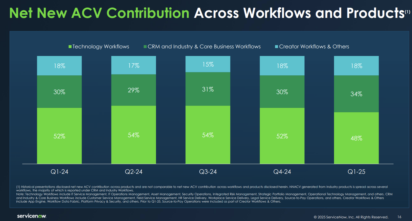 The numbers are highlighting ServiceNow momentum and itâs very clear that the company sees itself on a collision course with Salesforce, which is unifying its platform with Agentforce. ServiceNow has plenty of room to run in CRM as it expands its total addressable market. CRM and industry workflows were in 16 of the company's top 20 deals and nine of them had more than $1 million in ACV.