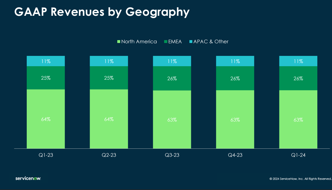 ServiceNow reported first quarter net income of $347 million, or $1.67 a share. Non-GAAP earnings were $3.41 a share. Revenue for the first quarter was $2.6 billion, up 24% from a year ago. Wall Street was expecting ServiceNow to report earnings of $3.13 a share on revenue of $2.59 billion.