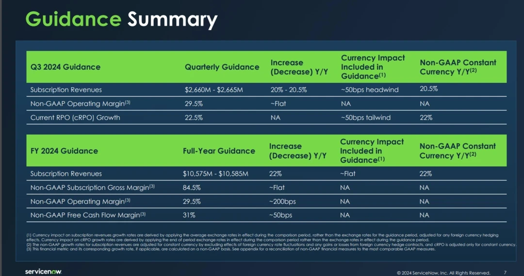 As for the outlook, ServiceNow said third quarter subscription revenue will be between $2.66 billion to $2.665 billion, up about 20%. For 2024, ServiceNow said subscription revenue will be between $10.57 billion to $10.58 billion, up 22%.