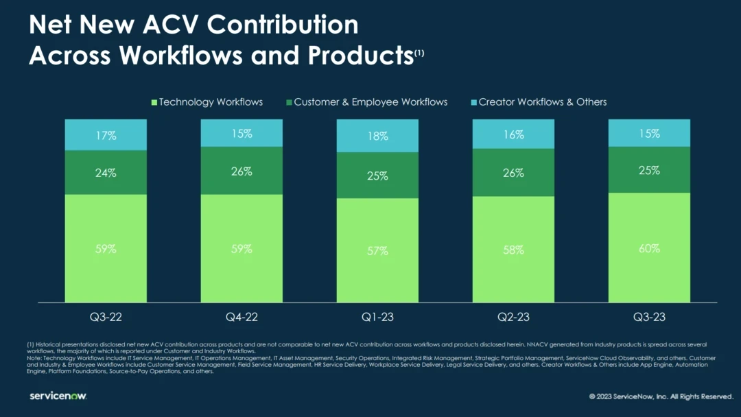 - "All of our workflow businesses were in 14 or more of the top 20 deals, ITSM, ITOM, ITAM, security and risk, customer, employee, and creator. Within our technology workflows, security and risk had a very strong quarter, with 10 deals over 1 million. Employee workflows had a stellar quarter with seven deals over 1 million and one deal over 10 million."
