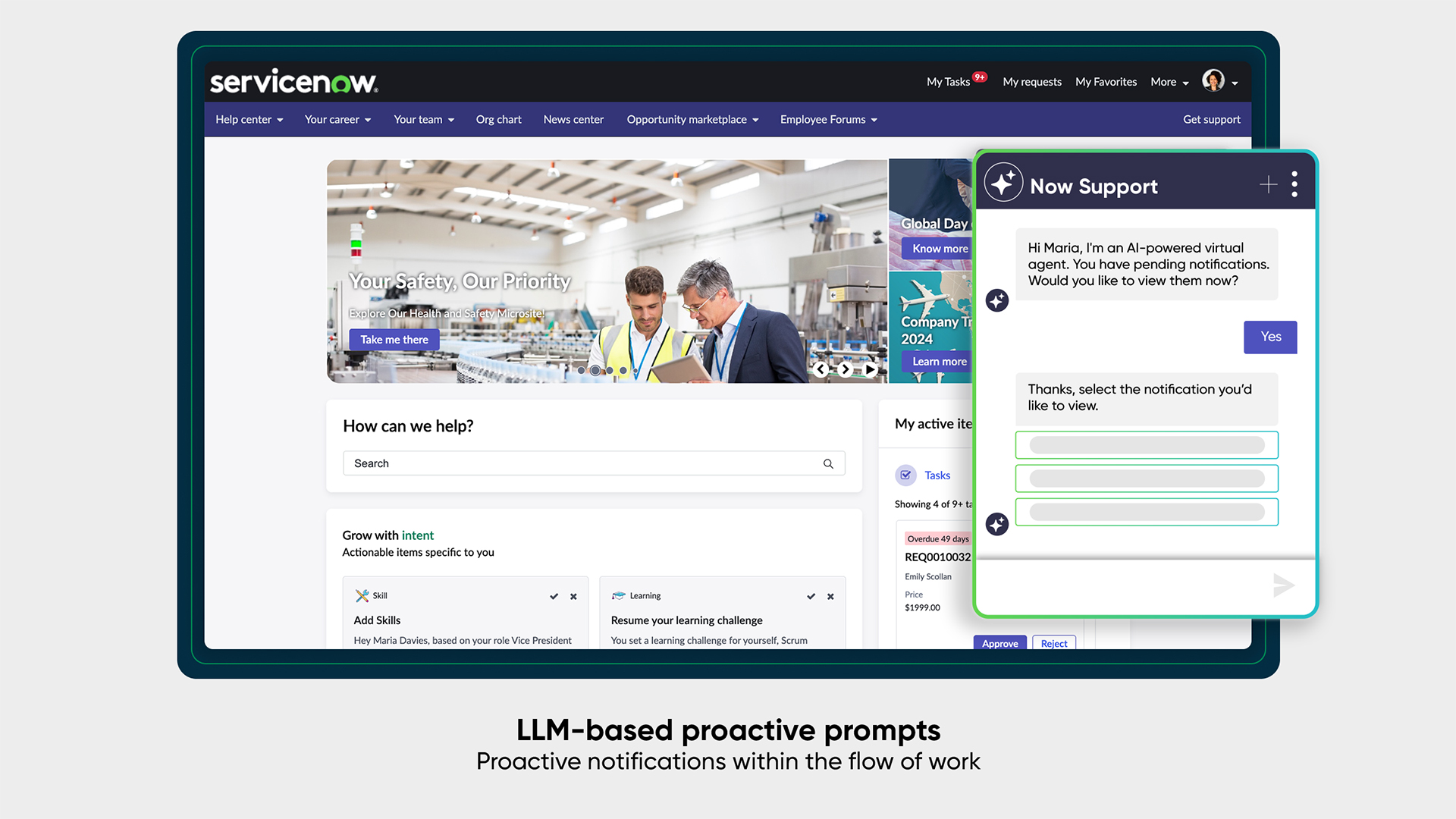 - Now Assist for HR Service Delivery (HRDS) engages employees and managers to complete tasks like approvals, training and goal setting with LLM prompts.