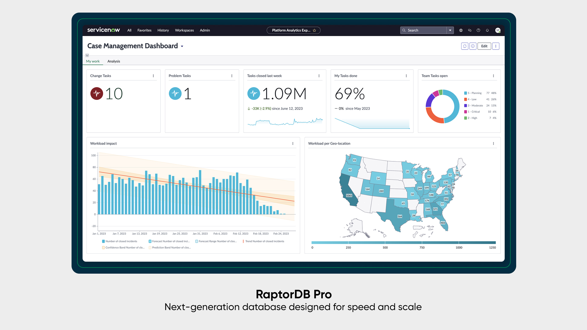 RaptorDB Pro adds a column data store architecture optimized for large datasets that improves speed and efficiency of querying data. ServiceNow said the addition of RaptorDB Pro is abstracted away from customers so they don't have to interact with the database or adjust workflows.