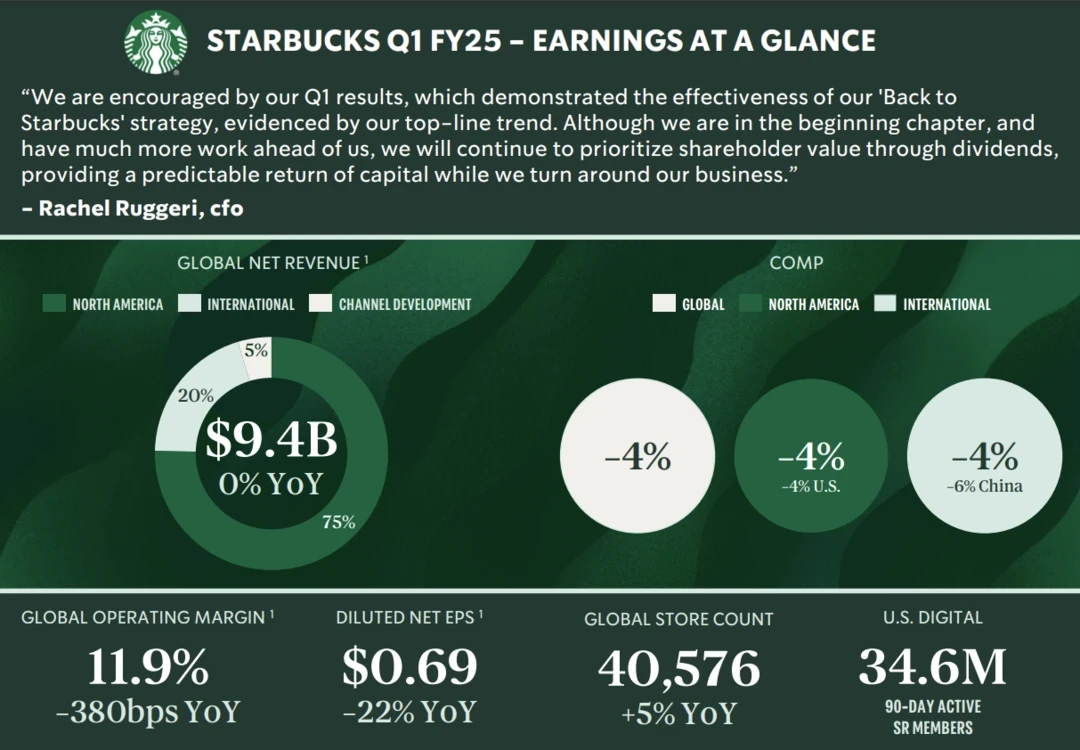 Starbucks said the company is investing in labor, marketing, technology and stores to stabilize the business and revamping support teams to execute on its Back to Starbucks plan