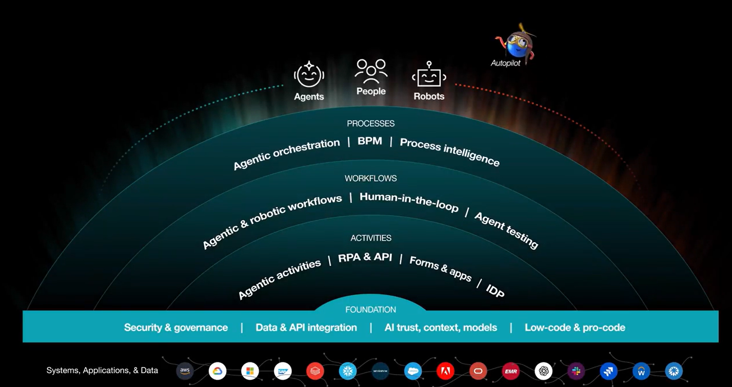 UiPath launched the latest version of platform with a focus on "agentic automation" that encompasses AI agents, but acknowledges that technologies like robotic process automation and even people fit into automated processes.