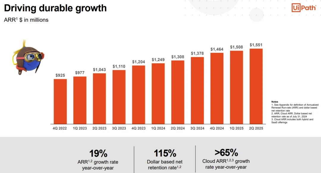 - UiPath ARR in the second quarter was $1.55 billion, up 19% from a year ago.